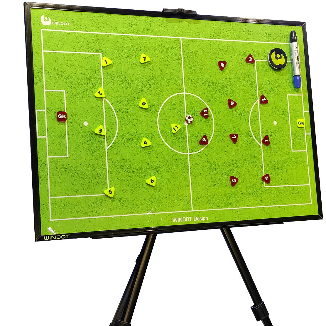 تابلو مربیگری فوتبال انتخابی حرفهای و هوشمندانه برای مربیان فوتبال، آنالیزورها، معلمان ورزش و بازیکنان حرفهای است که به دنبال ابزاری دقیق، کاربردی و قابل حمل برای تحلیل بازی، نمایش آرایشهای تیمی و طراحی تمرینات هستند. این تابلو با طراحی ایستاده و قابلیتهای خاص، در کنار وزن سبک و تجهیزات کامل، تمامی نیازهای فنی شما را در زمین تمرین، رختکن، سالن جلسات یا مسابقات رسمی برطرف میکند.